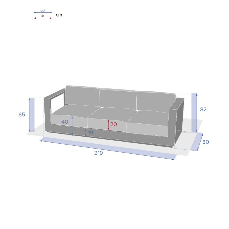 La structure est en aluminium traité époxy antirouille. Les coussins polyester 275 g/m² sont déhoussables pour un entretien facile et traités déperlants permettant à l’eau de glisser sans pénétrer dans la matière.