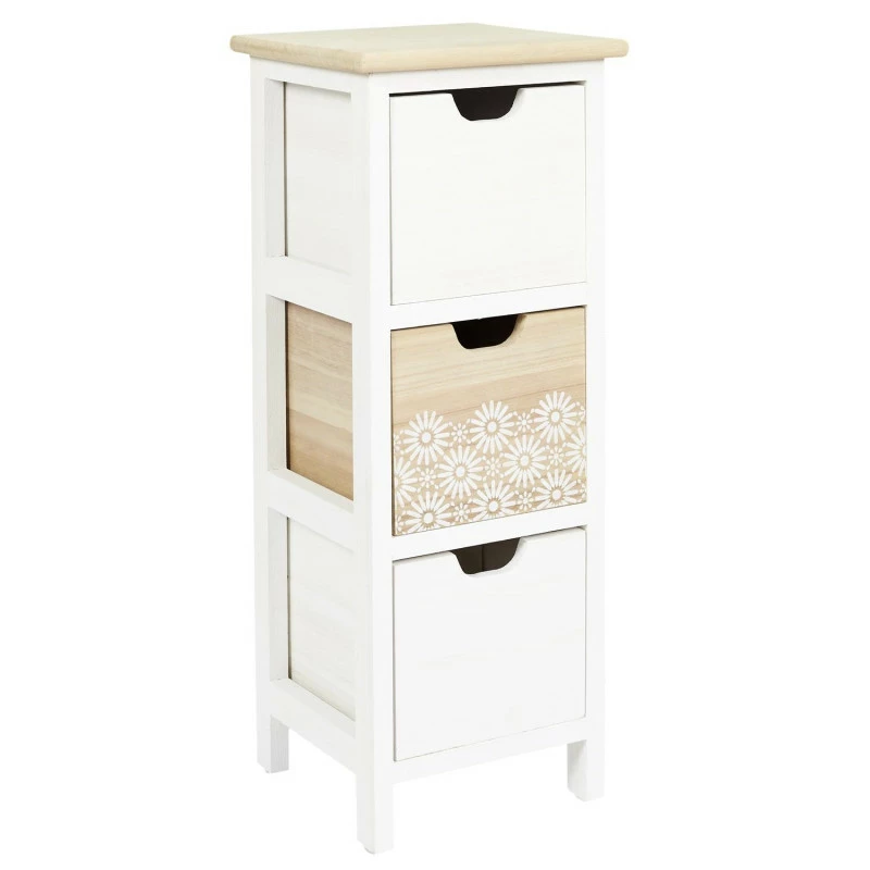 Bénéficiez de rangement supplémentaire avec le chiffonnier 3 tiroirs Chic coloris naturel et blanc.