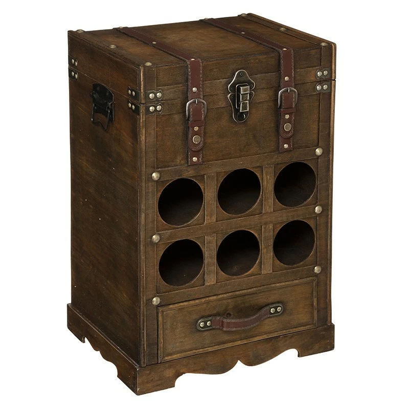 Adoptez le charme vintage de ce coffre en bois avec range bouteilles de la marque Atmosphera.