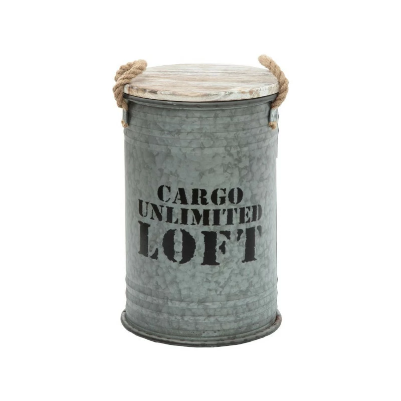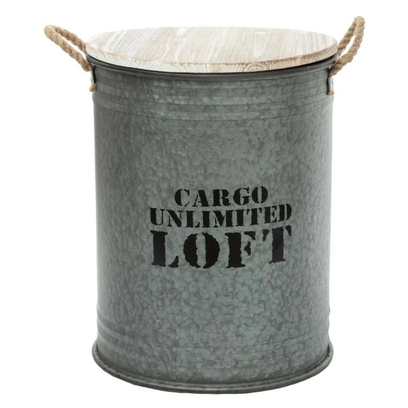 Lot de 3 coffres en formes de bidons gris métallisé de la marque Atmosphera. Adopter un style industriel grâce à ces bidons Loft avec leur plateau en sapin et leurs poignées en chanvre.