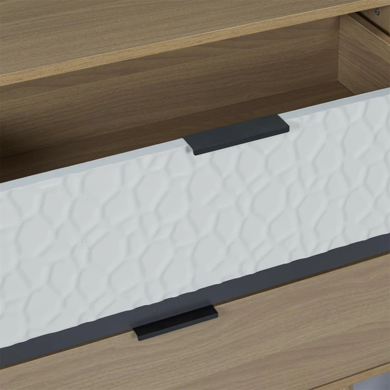 Le style matière avec ses différentes textures de tiroirs apportera toute l’originalité de ce meuble.