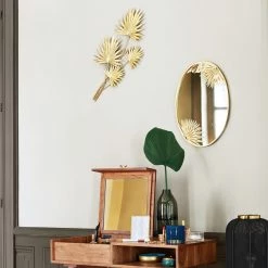 Déco Murale Métal 112×74 Feuilles Dorées Atmosphera