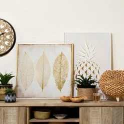 Toile Imprimée Feuilles Dorées Encadrée Atmosphera