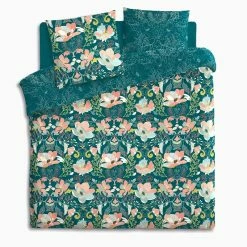 Parure De Lit Paon Bleu Canard 240×220 Atmosphera