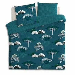 Parure De Lit Atsuko Bleu Canard 240×220 Atmosphera