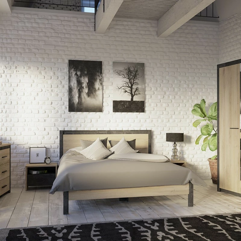 Résolument dans l’air du temps, le lit Kansas saura apporter une touche tendance à votre chambre. Assorti au chevet et à la commode de même nom.