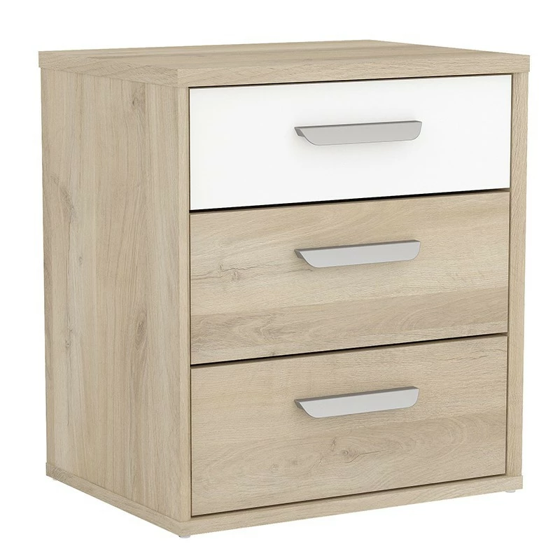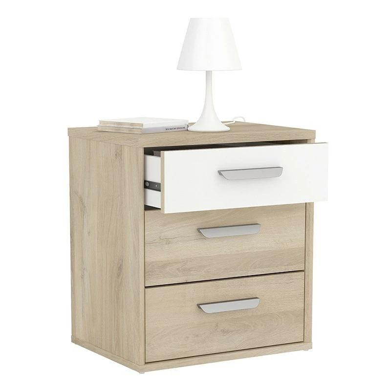 Demeyere Table De Chevet 3 Tiroirs Naturel Et Blanc Santorini