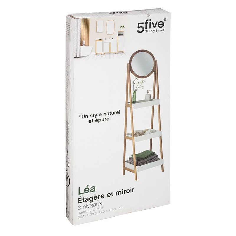Étagère 3 niveaux avec miroir rond. Idéale pour une chambre ou une salle de bain.