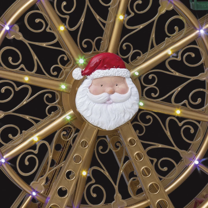 Grande roue père Noël animée, lumineuse et musicale qui amènera l’esprit de Noël dans votre foyer tout en restant discret et vous plongera dans l’univers de la fête foraine.