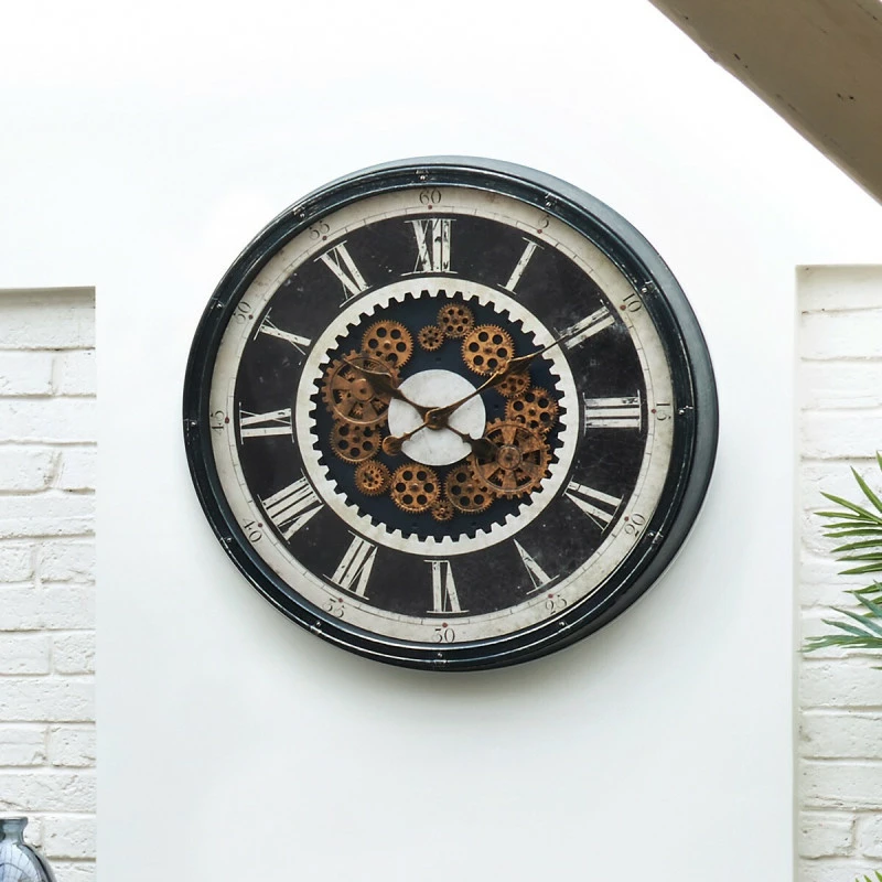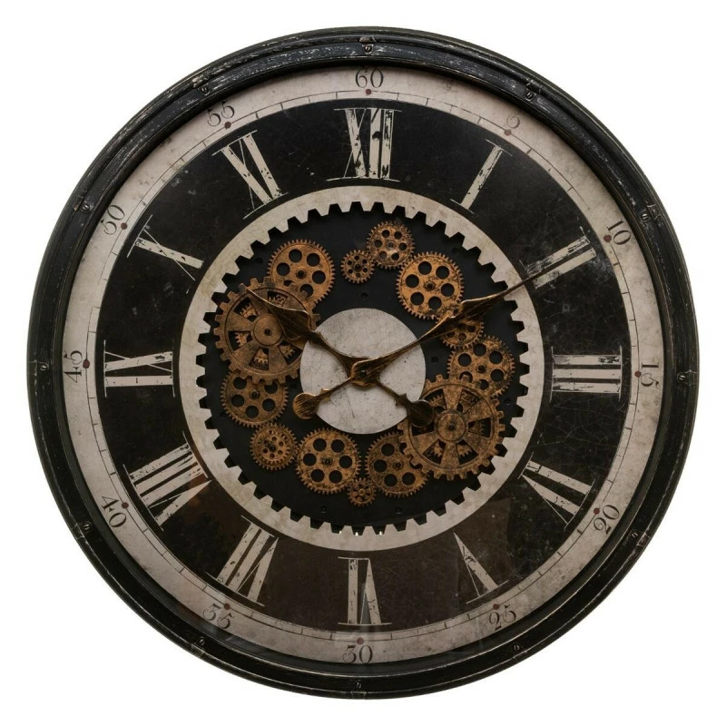 Grande horloge avec rouages animés de la marque Atmosphera. Cette horloge silencieuse effet vieilli affiche un style résolument vintage.