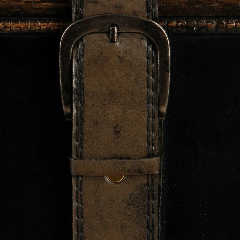 Superbes malles en bois, fermetures par crochets en métal, équipées de sangles façon cuir. Pour ranger et offrir un style éternel à votre intérieur. La grande malle a 2 tiroirs dans le bas. Dimensions des malles 76x47xH58 cm, 66x36xH36 cm et 56x27xJ27 cm. Poignées latérales.