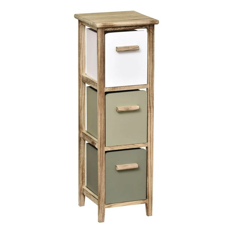 Meuble Carré 3 Tiroirs Bois Kaki Blanc – Image 2