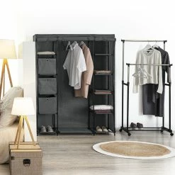 Armoire De Rangement 4 étagères Et 1 Penderie Gris En Tissu