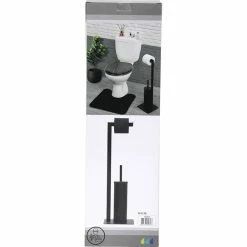 Brosse + Dérouleur WC Métal Noir Et Bambou