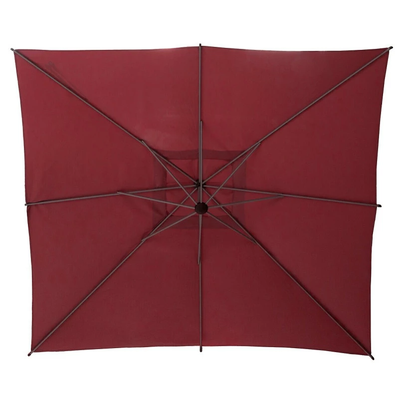 Protégez vous du soleil avec le parasol décentré toile carrée Manoa en coloris bordeaux de la marque Hespéride.