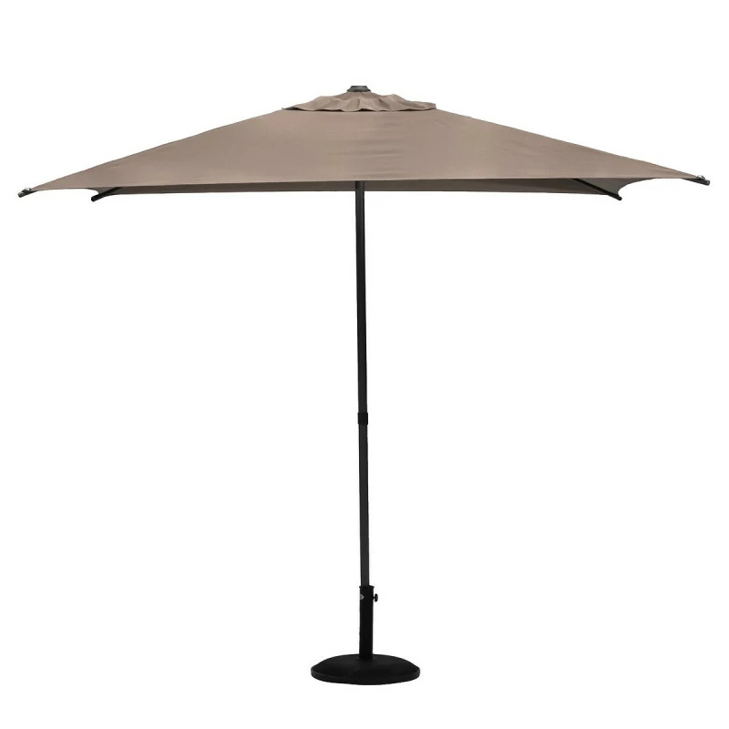 Cet été, protégez vous du soleil avec le parasol mat central carré en coloris taupe de la marque Hespéride.