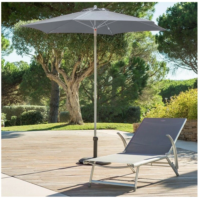 Protégez vous du soleil avec ce parasol rond mat central Anzio de la marque Hespéride coloris gris ardoise.