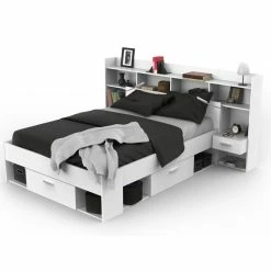 Demeyere Lit 90×190/200 Cm Avec Environnement Life Blanc Et Bois