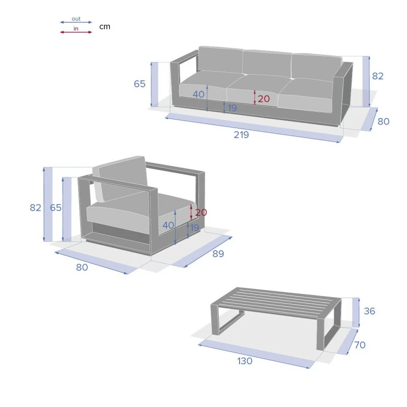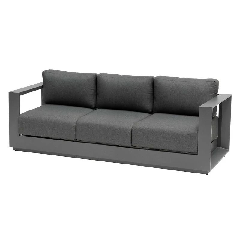 Très solide, la structure est en aluminium traité époxy antirouille. Les coussins (en polyester 275 g/m²) sont déhoussables afin de permettre un entretien facile. Le tissu est traité contre la décoloration et déperlant permettant à l’eau de glisser sans pénétrer la matière.