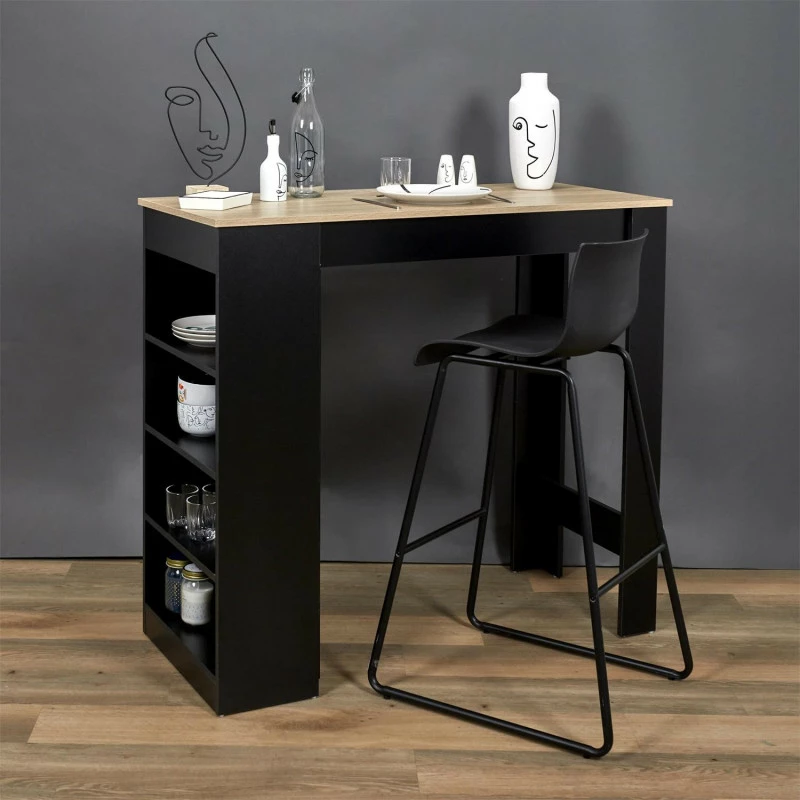 Table De Bar Avec étagères Et Plateau Bois – Image 2