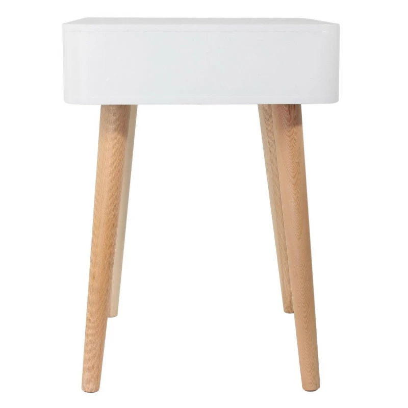 Table De Chevet Pieds Bois 1 Tiroir Blanc – Image 4