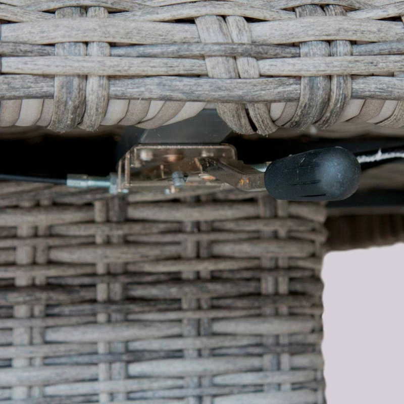 La table dispose d’une structure en résine tressée synthétique spécialement conçue pour l’extérieur.
