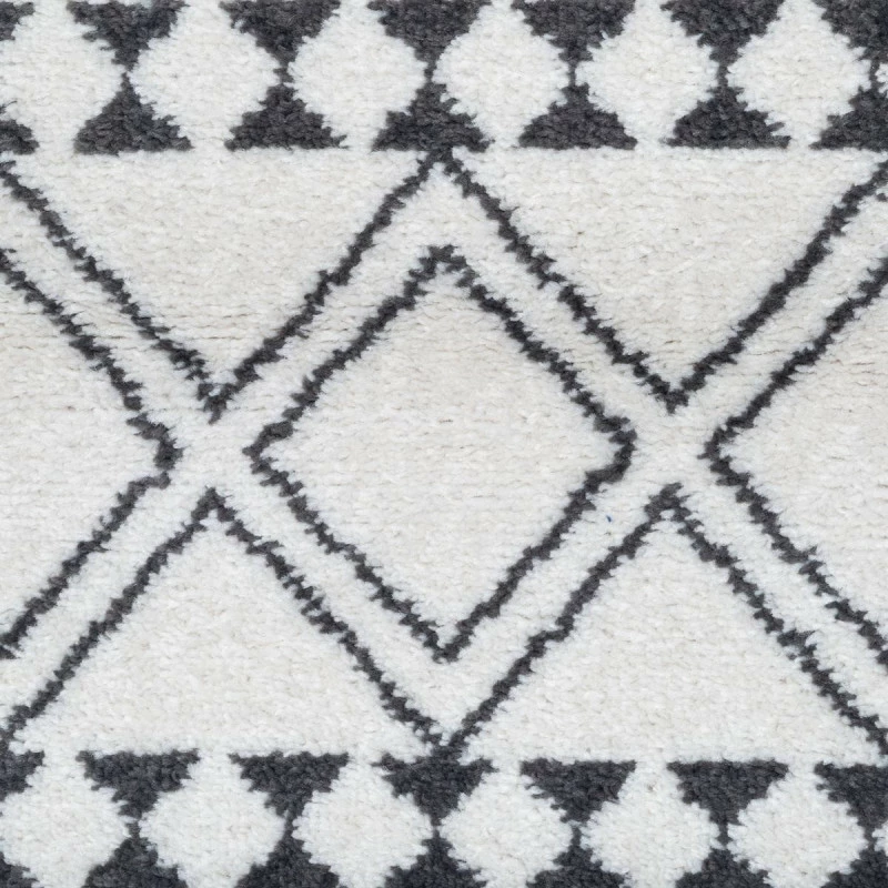 Tapis blanc et gris foncé avec motifs ethniques de la marque Atmosphera. Apportez une touche bohème à votre intérieur avec ce tapis motifs ethniques.
