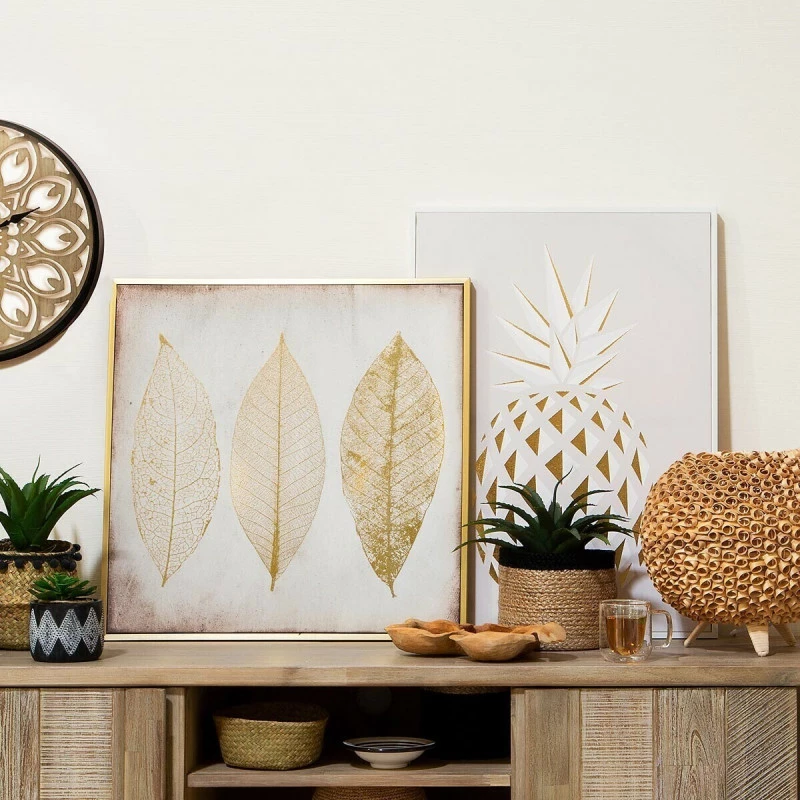 Toile Imprimée Feuilles Dorées Encadrée Atmosphera