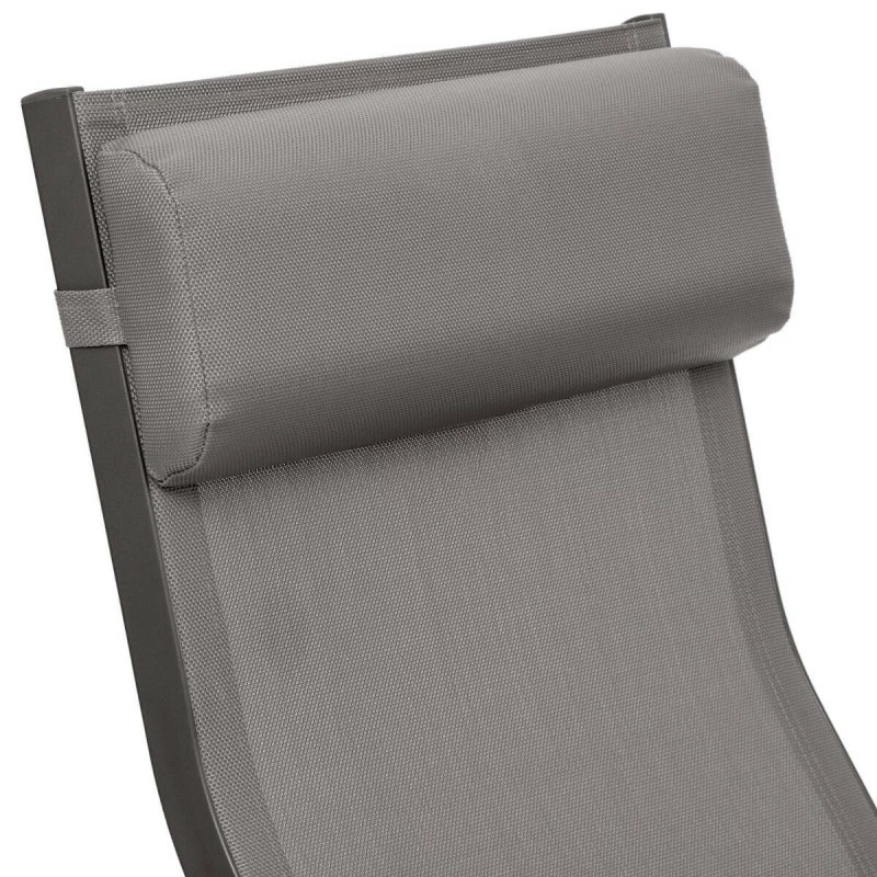 Conçu pour résister, le transat dispose d’une structure en aluminium traité époxy antirouille et d’une assise en texaline (polyester enduit PVC) 570 g/m².